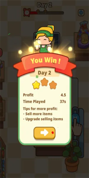 2. 关卡设计合理:游戏以关卡形式推进,循序渐进,难度适中。随着进程逐渐解锁更多商品品类、特殊顾客与突发事件,能让玩家持续保持新鲜感,享受长期休闲体验。