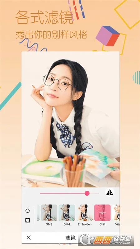 2、修图不再繁琐,其全能修图工具箱支持局部调节、背景虚化等,细节可由你自由定义,还有潮流特效让创意无限发挥。