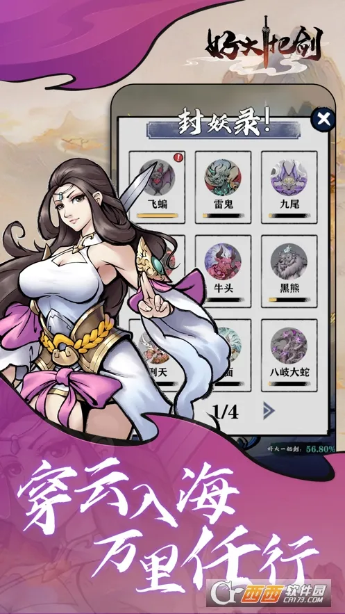 好大一把剑(武侠冒险游戏)是一款武侠主题的弹射放置冒险游戏,采用古老的水墨画风格,带你进入真实的武侠世界。在这里,你将作为菜鸟战士,为了重振门派而踏上冒险之旅。以下是这款游戏的一些体验: