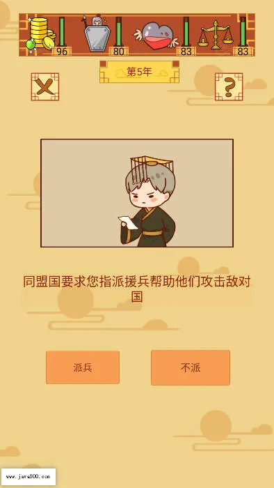 4、还得维持国库、军队、体力、民心四项数值不低于0 ,在经营国家中体会当皇帝的不易。