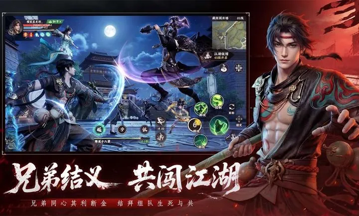 3. 首创硬派武侠多元战斗系统,支持全球华人跨服激战,组队副本、跨服战等玩法精彩。