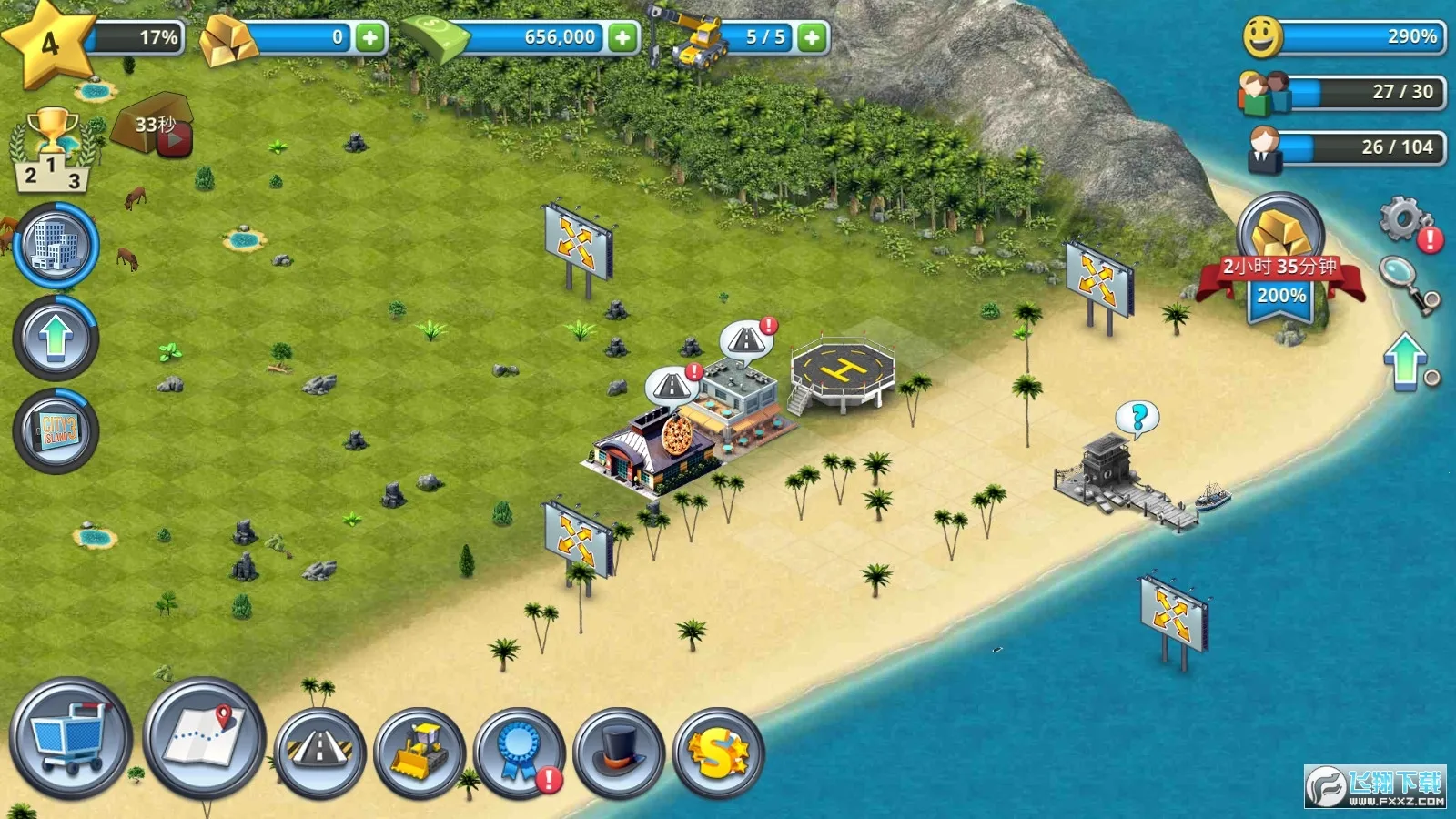 玩法亮点多,比如通过升级解锁不同岛屿,在旅游天堂岛、火山岛等各种地形上建城。合理规划很重要,建公园、河道提升幸福指数,还能获经验奖励。快来下载,用你的智慧和努力,打造属于自己的魅力城市吧!