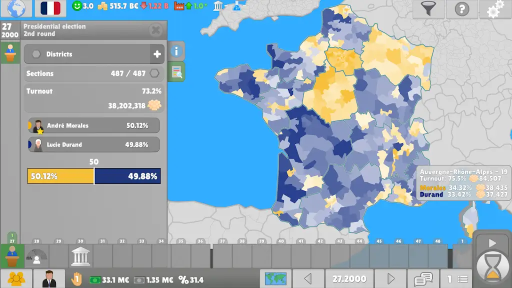 4. 支持玩家从基层议员晋升至全国领导人,积累政治资本,体验艰辛历程。
