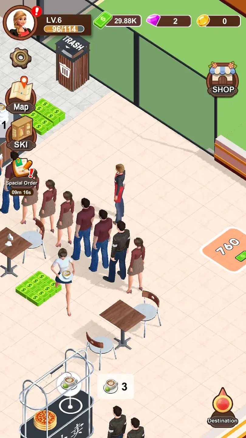 2、它提供不断投资解锁高速设备、新桌子和实用功能的机会,助力玩家逐步壮大披萨店规模。