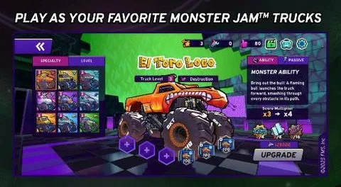 在终极MonsterJam竞技场中,尽情释放驾驶激情,展现高超特技表演。一路横冲直撞,碾压对手,用实力证明自己,赢得胜利,成为众人焦点。