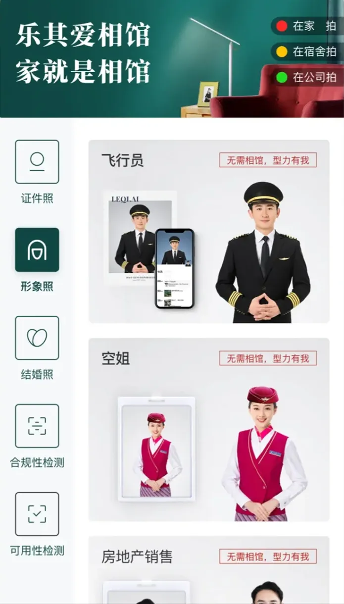 乐其爱相馆是一款手机端证件拍摄制作软件,功能强大。能在家拍正规好看的电子版证件照,有多种尺寸模版,支持换装、换背景色,提供合规检测、编辑、保存打印及客服功能,使用方便。
