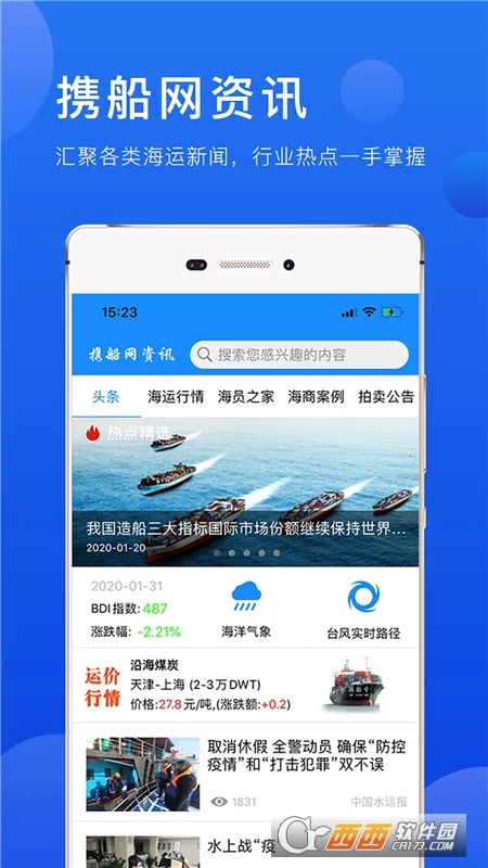 携船网是一款超棒的互联网海运服务软件。它能提供船舶查询,像国内船舶定位、动态、档案及海洋气象等信息都能查到。有供应链金融服务,承接大型企业招投标业务还能垫付运费。运输交易能享受补贴政策降低成本。航运圈可免费发布信息对接供需双方。还有西船网资讯,让你一手掌握航运热点、政策法规、运价、船舶拍卖等信息。商户服务涵盖港口服务、船舶维修、附件设备、法律咨询等栏目。找船也方便,在APP首页选船舶选项卡,能按船型、船长、价格区间、船龄等筛选搜索,还能在线咨询和预约看船。总之,它功能强大,能解决海运行业从业者信息不对称和交易难题,带来便捷高效的服务体验,是海运出行的得力帮手。