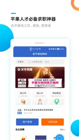 新平果招聘网2025官方最新版本是平果果果广告有限公司打造的求职神器。能精准匹配岗位,招聘信息实时更新且企业严审。有智能推荐、简历编辑等功能,助求职者高效开启职业新篇章。