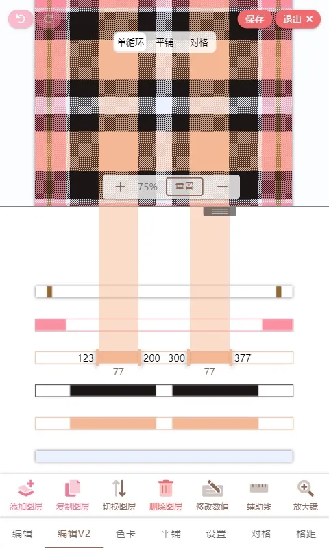 人形姬(JK格柄绘图软件)的体验很棒。它功能强大,支持横竖不同瓜皮裙千鸟格等特殊格形,还能通过修改线宽和画布大小来修改单循环,快速对色卡、批量改色等功能也十分实用。