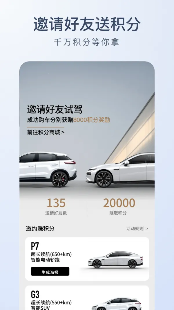 2. 鹏友社区让你能结识到更多新朋旧友,分享独特的用车体验,还能报名参加丰富的车友活动,不再孤单。