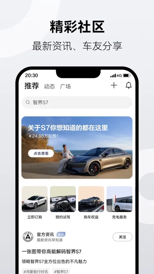 鸿蒙智行是华为官方推出的智能汽车管理助手,涵盖官方资讯、订车购车、智能车控、充电服务等功能。支持多车型,提供统一流畅体验,还有用户互动平台,让出行更便捷智能。