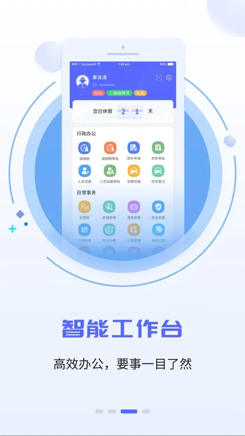 4、智慧小蓝还拥有即时通讯消息智能分类功能,让沟通更高效,智能工作台能高效办公,重要事项一目了然。