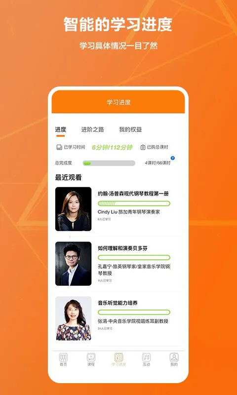 2. 方式多样内容丰富,有课程大师点评、音乐会演奏、参加比赛音乐节等,在钢琴演奏学习的每一步,都提供正确的方法和课程内容支持,让专业演奏钢琴之路丰富多彩富有乐趣。
