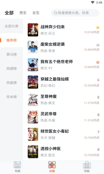 1. 分类排行,好书推荐,提供的小说皆是优质内容。这里有清晰的分类,能让你快速找到心仪小说,还有精心推荐,带你领略各类精彩好书。