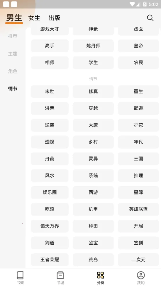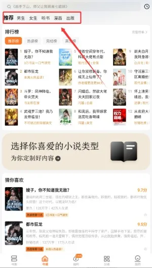 2、用户可以选择自己喜欢的小说类型