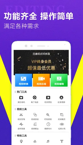 迅捷视频转换器安卓版是一款多功能视频处理软件,支持20种主流格式转换,有高清无损、快速批量处理等功能,还能编辑裁剪、添加特效字幕,集转换编辑音频提取于一体,操作简单易上手。
