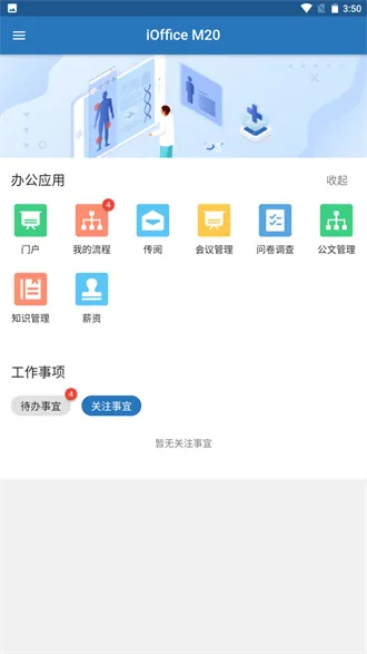 iOffice M20最新手机版是线上协同办公平台,集成常用应用,助用户3A办公。有高级设置等功能,提供知识、问卷等管理,支持待办、会议管理,具备查询方便等特色,含多项应用。