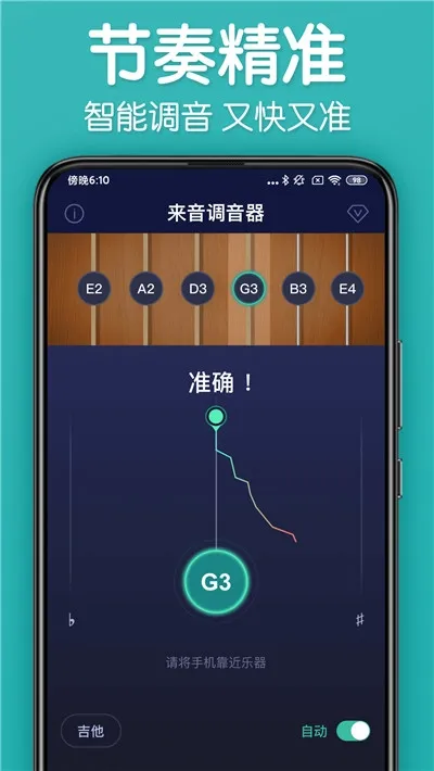 2、提供自动和手动两种调音模式,用户可自由切换,还能获得音阶调整方向提示,快速学会使用。
