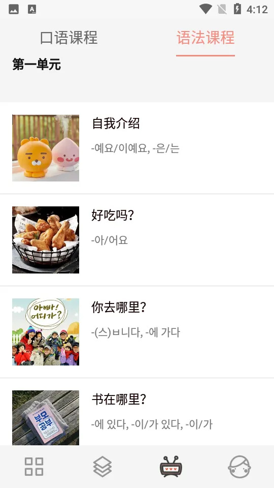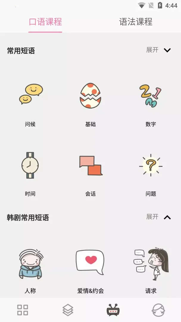 2. 其内容丰富多样。有场景短语,结合实际生活场景分类学习,很贴合生活;提供全本韩语字母发音表,能在线学到所有发音,打好基础;具备课程学习,包含视频和音频教学,助力用户快速掌握知识;还有双语翻译,方便看到中韩对比及中文意思。