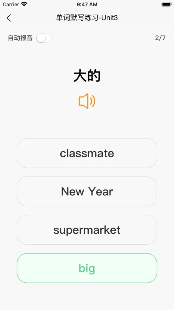 4、实时纠错功能很实用,能让用户及时发现并改正问题,提高学习效率,还支持多种题型,全面覆盖听写和拼写技能训练。