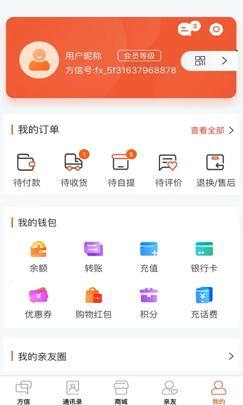 方信 2025 最新版本是一款多元化购物软件,覆盖全品类商品,有精细化分类。具备商城、通讯录等功能,能便捷购物、通讯社交,共享好物,还有充话费、售后等特色功能,满足多样需求。