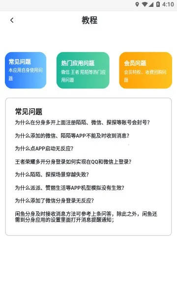 王者分身是一款超棒的应用多开分身和战力区查询app。它能帮你轻松搞定多开需求,让你在同一设备上登录多个游戏账号,每个账号互不干扰,还支持快速切换。有了它,就不用频繁切换账号啦。而且它能随时在线查询战力数据,让你全面掌握游戏进度,更好地了解自己在游戏中的位置,与对手比拼实力。使用过程中没有广告,给你最纯净的操作体验。另外,它还能迅速监测战力区,带来独家热点资讯。要是遇到添加的应用不能及时收消息、APP启动无反应等问题,软件里也有详细的解决办法。总之,王者分身实用性超高,能随心所欲分析游戏数据,帮你制定战术策略,提升通关胜率,强烈推荐你来下载体验!
