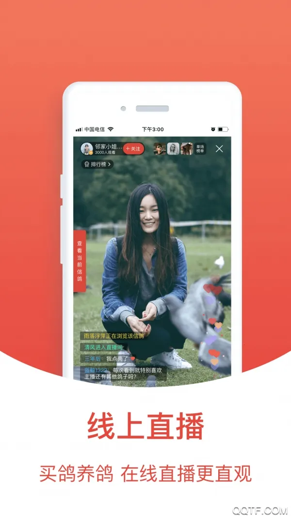 赛鸽头条的直播间可面对面交流,还能直接拍鸽,一键出价,不怕买到实物不符的鸽子。