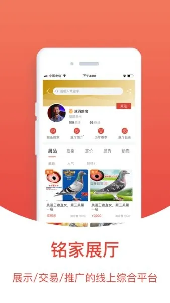 4. 线上拍鸽有定价鸽和拍卖鸽两个板块,助您选好种鸽,走好养鸽之路。