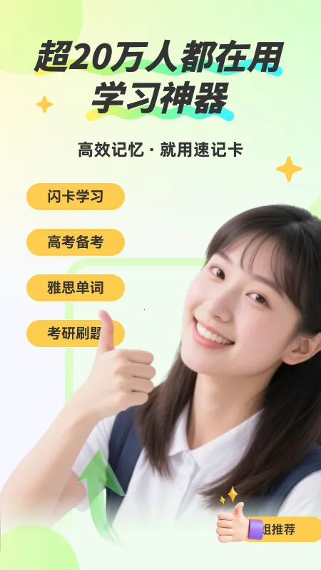 速记卡App是一款超棒的知识记忆工具,能满足不同人群多样的学习需求。它以卡片为核心,可创建含文字、图片、音频的多媒体卡片,自定义正面问题与背面答案。通过知识树管理分类整合知识点,双链记忆法关联知识点形成网络。多语种TTS朗读覆盖十余种语言,助你听说训练。文字与图片挖空、分屏画板、学习热力图等辅助工具,让学习更高效。还支持批量制卡,可从PDF、Word等文件一键导入。其优势众多,有科学记忆算法,跨平台同步,能高度个性化定制。能解决学生备考、职场人士学新技能、语言爱好者学小语种及终身学习者拓展知识等问题,利用碎片时间就能轻松实现高效记忆,降低学习门槛,快来下载体验吧!