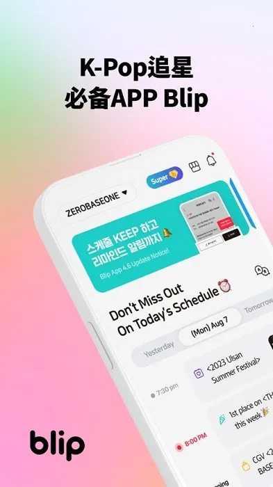 Blip安卓版是专为韩娱追星族打造的软件。能关注喜爱的韩国爱豆,获取行程推送,还可投票、结识同好组建应援团。有多样功能、特色与亮点,助你全方位追星。
