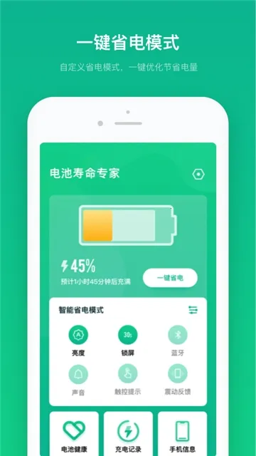 电池寿命专家是一款手机电池管理软件,能监控电池健康,提供4种智能省电模式,可检测潜在隐患、评估健康度、记录充电情况,还能查询手机信息,助用户科学使用手机延长电池寿命。