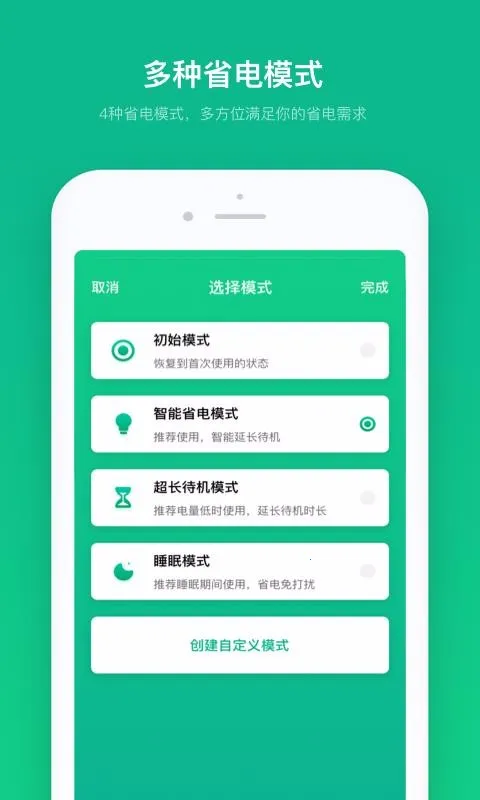 2. 自定义省电模式可让用户依据自身习惯调整应用耗电设置,更便捷地使用手机,实现个性化电池管理。