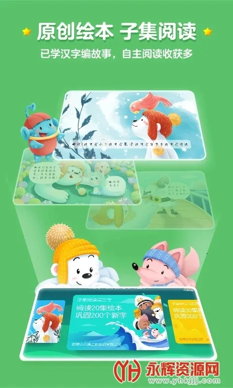3、它创意设计趣味互动识字,有800根据字源字形字义原创的趣味互动内容,涵盖众多主题,还配套130本原创阅读绘本,让孩子快乐认字、自主阅读不费力。