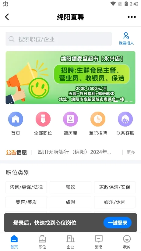 1、专注绵阳地区,为当地居民及外来人员提供服务,涵盖衣食住行吃喝玩乐等全方面生活信息,助力融入当地生活。