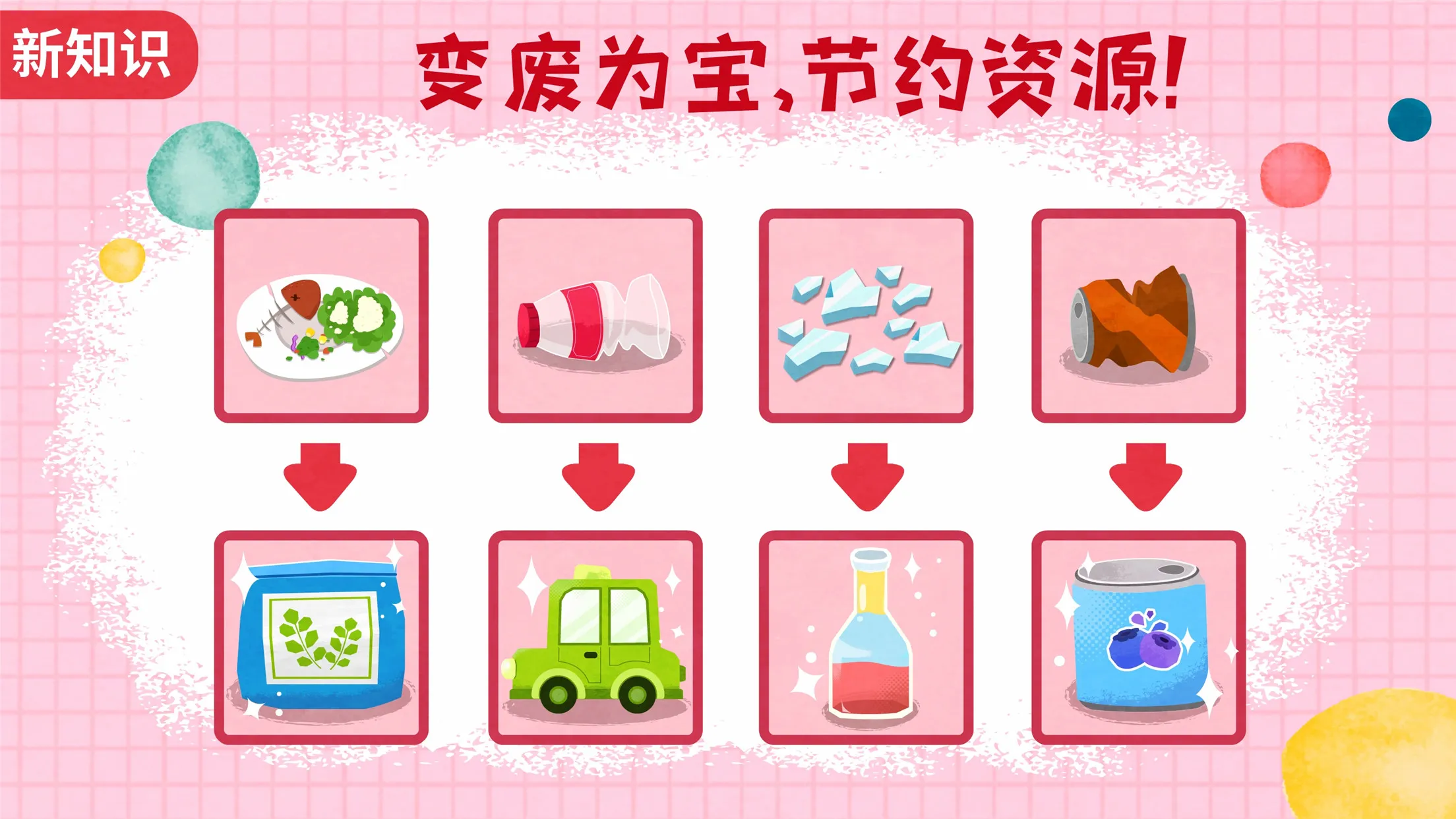 2、其画面生动,还将画面与音频完美结合,模拟家庭垃圾处理方法,融入学习内容,加深孩子记忆。