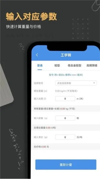 1. 精准计算:依据钢材形状、厚度等数据,一键算出准确重量。