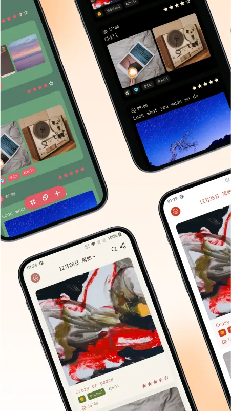 2. 卡片日记和自定义标签:卡片形式记录日记,方便组织与展示思考及回忆,自定义标签便于分类检索。