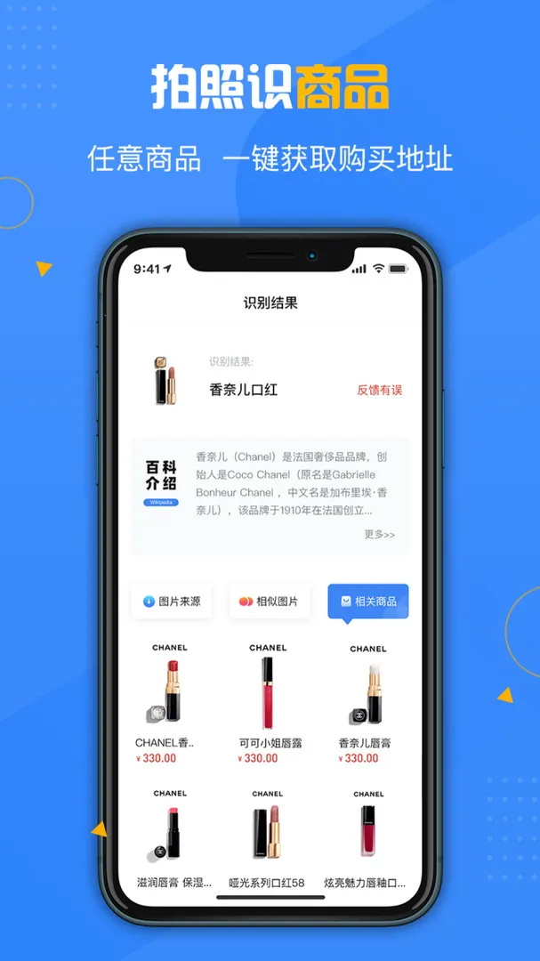 3. 免费使用,无需任何费用,联网即可操作,还能自动为识别商品提供购买链接,方便一键下单。