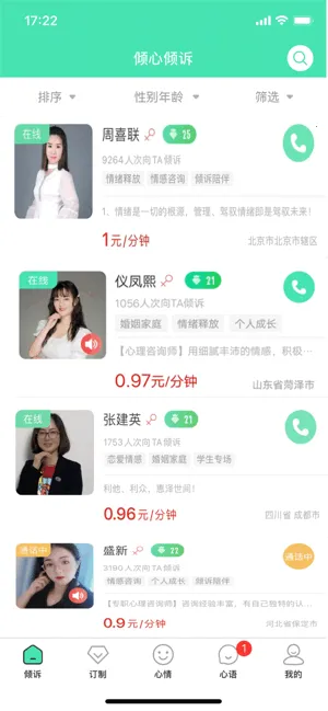 1. 在这里,你能尽情倾诉内心烦恼。有众多专业心理咨询师随时待命,无论恋爱、婚姻还是亲子关系问题,都能帮你找到化解之道。