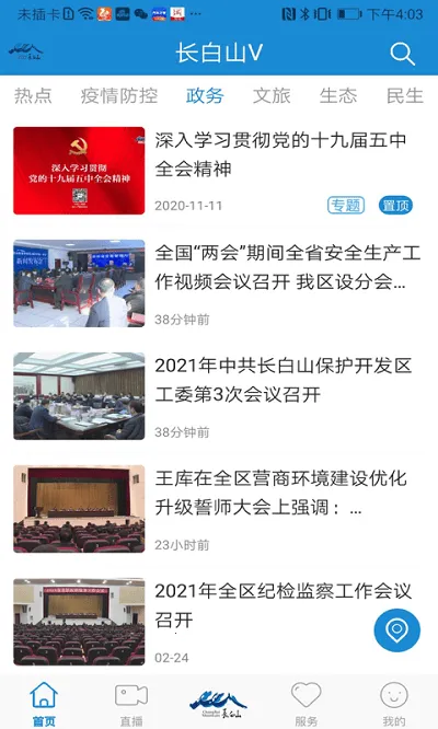 长白山V是长白山广播电视台打造的综合性官方客户端,集直播点播、新闻资讯、社交娱乐、便民服务为一体,提供本地资讯、节目点播、互动等功能,还有天气公交等便民信息。