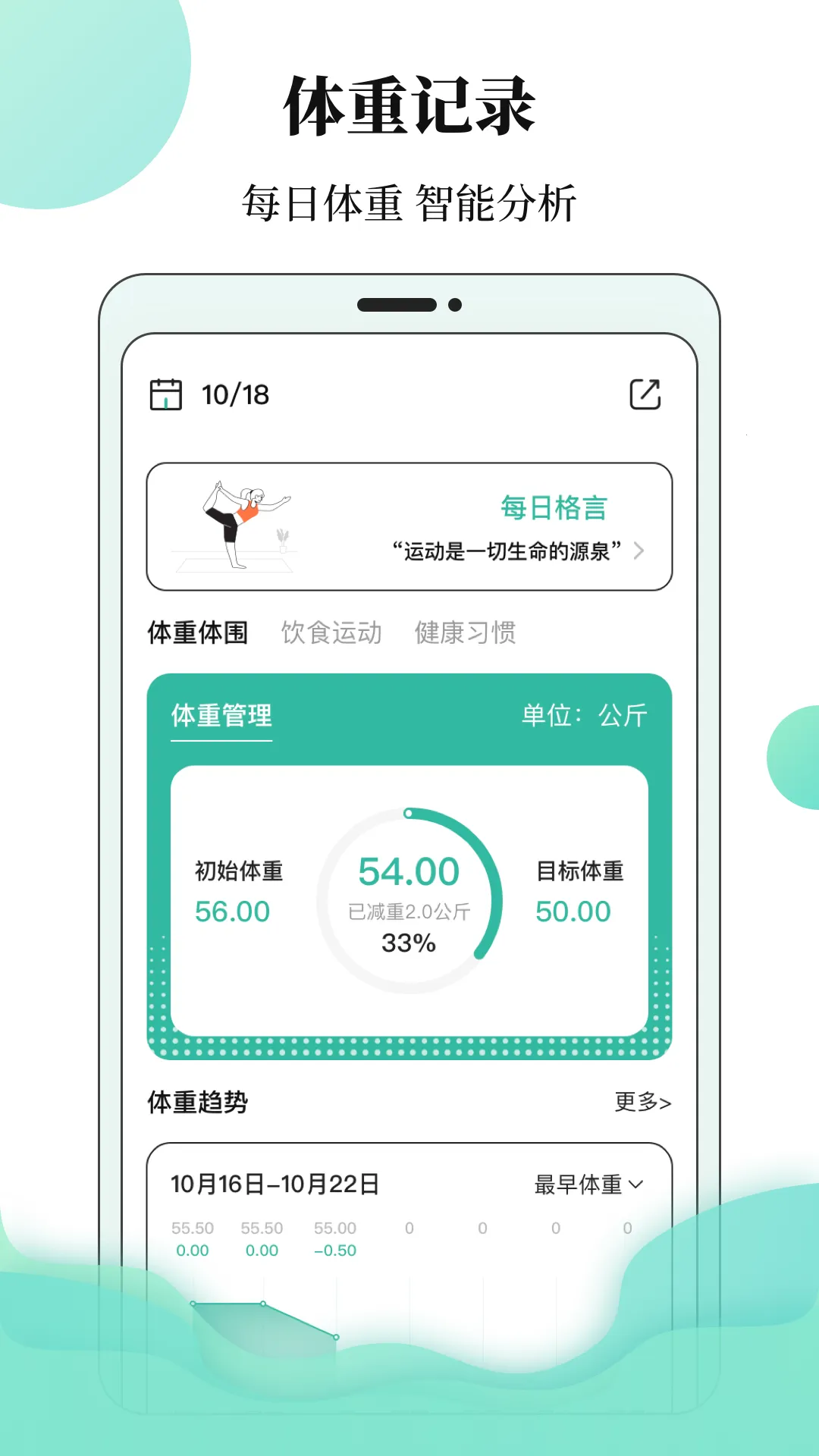 3. 体重趋势一目了然,通过图表数据清晰呈现体重变化情况。