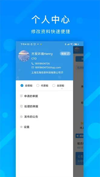 该软件自带强大的同步备份功能,不用担心数据丢失。通过平台可进行云端管理各大板块,轻松掌握船舶状态。