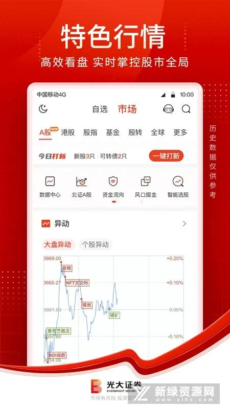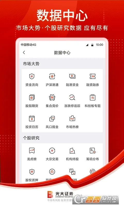 光大证券金阳光是光大证券自主研发的一站式综合金融理财服务平台,涵盖行情交易、理财商城等功能。有极速开户、智能投顾等特色,行情交易快,资讯丰富,还提供模拟炒股及多种交易支持。