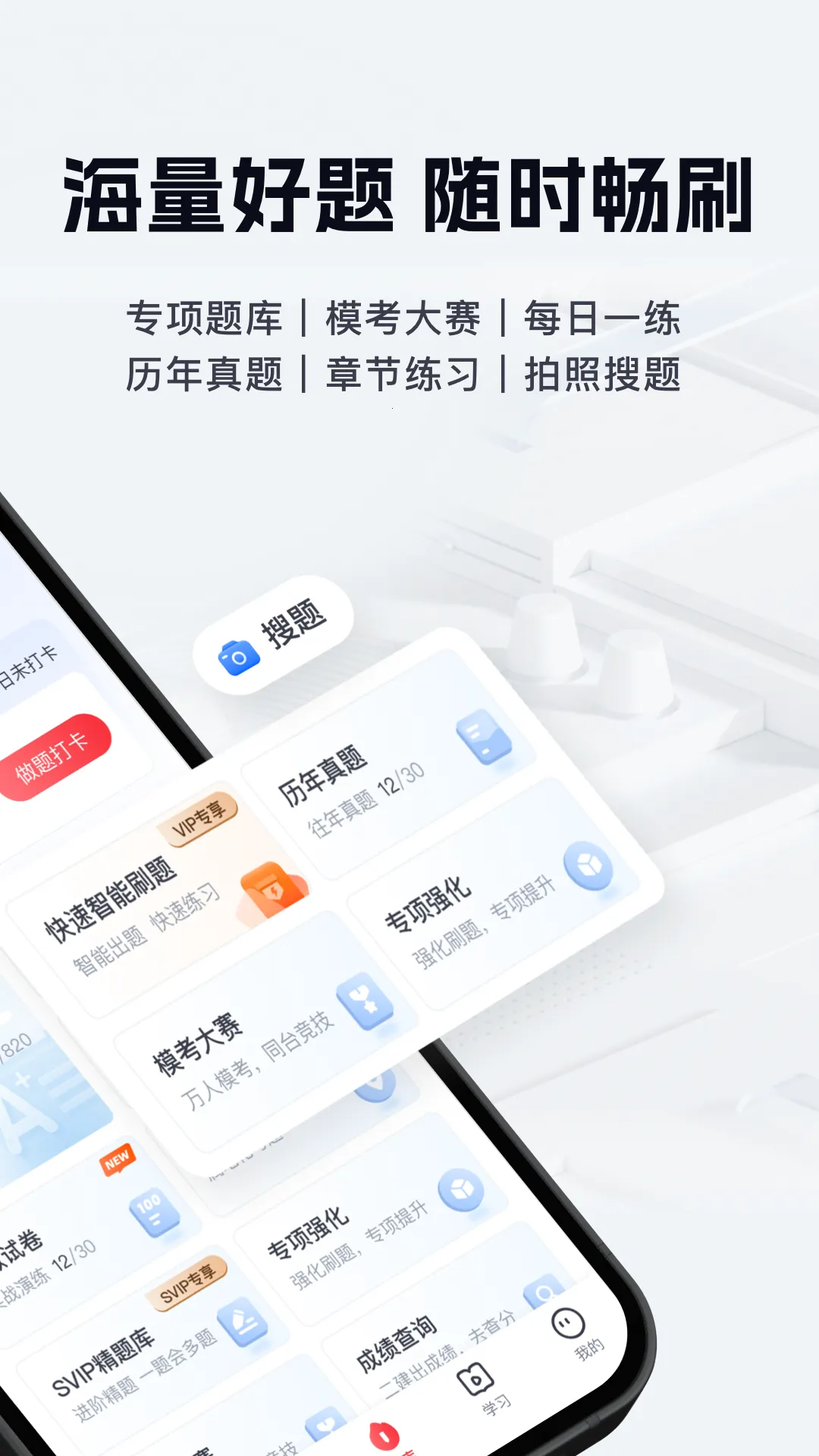 其线上直播课能让学员和名师面对面交流,高效提升。还有海量题库,边学边练,分类刷题针对性强。