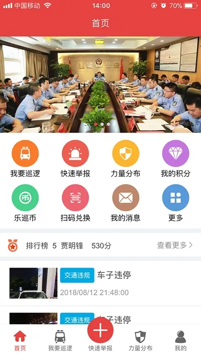 2. **功能丰富**:它集成了平安巡逻、快速举报、积分商城等12个智慧巡防应用场景。能定时定位派发任务,吸纳民间巡逻力量;支持异常事件上报,可通过多种形式实时上传现场情况;积分能兑换商品、代金券、会员等,还有积分排行榜、本地优惠等。