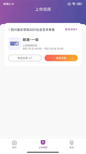 川音艺术考级APP是四川音乐学院打造的线上考级软件,集报名缴费、考试查询成绩等一站式服务。通过线上录制考评视频、评定,简化流程,提高频率,降低风险,还能反复对照提升练习。