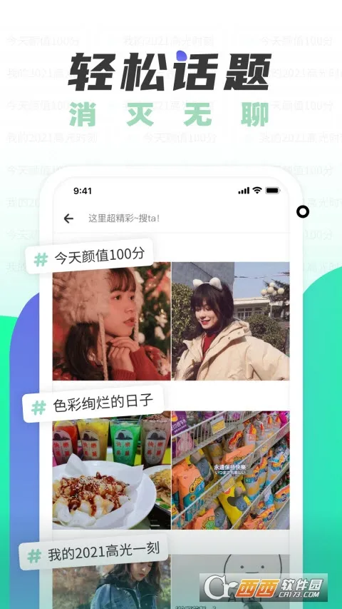 2. 特色社交互动:以现实生活为起点,发现共同话题,结识共鸣之人。个人主页定制专属标签,话题页分享生活,社区获取灵感。