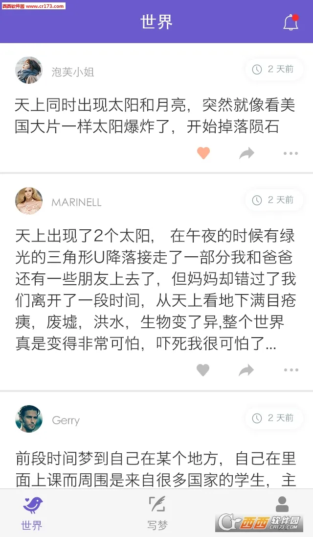 2. 该软件支持用户在线评论感兴趣的梦境,与作者互动交流,还能将喜欢的动态分享给好友。你可以尽情探索他人的梦境,感受不同的奇妙世界。