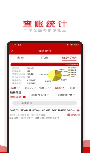 4. 软件功能丰富,涵盖记账、查账、录车、店铺推广营销等,还能实时查看可视化数据分析,为二手车商提供一站式移动办公服务。