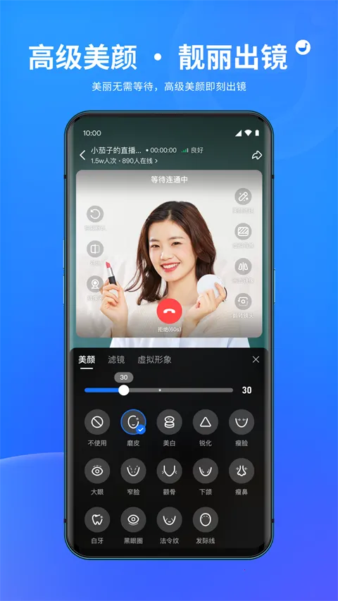 2. 其美颜功能很出色,能保证主播在镜头前展现出最佳状态。而且支持连麦互动,让主播和观众之间的沟通更顺畅,互动性很强。